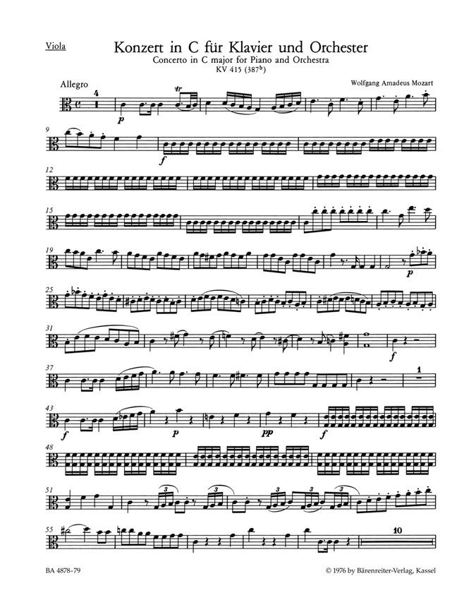 Konzert für Klavier und Orchester - Concerto for Piano and Orchestra. Viola - Einzelstimme