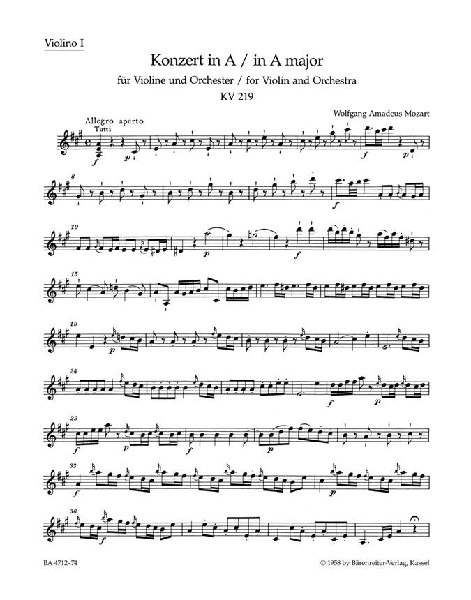 - Ausgabe Einzelstimme Violine 1 (Urtext)