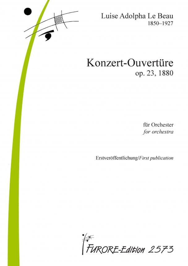 Die Arbeiten an der Konzertouvertüre für großes Orchester op. 23 begann Le Beau im Dezember 1878. Zu dieser Zeit war der Unterricht bei Joseph G. Rheinberger nach zweijähriger Dauer bereits beendet. Durch intensive Studien an Symphonischen Werken in der Bayerischen Staatsbibliothek erwarb sie sich autodidaktisch hervorragende Orchestrierungskenntnisse. Die Konzertouvertüre ist das erste ihrer Werke mit großer Besetzung. Ihm folgten die Fantasie für Klavier und Orchester op. 25, das Klavierkonzert op. 37, die Sinfonie op. 41, eine Sinfonische Dichtung op. 43 sowie oratorische Werke und eine Oper. Die Uraufführung fand mit großem Erfolg am 15. Oktober 1882 in Baden-Baden statt. Gewidmet ist die Komposition dem Großherzog Friedrich und Großherzogin Luise von Baden.