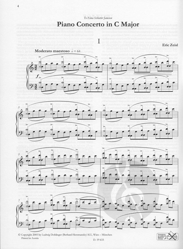 Konzert für Klavier und Orchester in C-Dur, Solostimme Klavier
