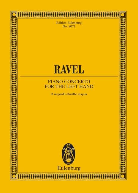 Das einsätzige Konzert für die linke Hand in D-Dur vereint wuchtig-monumentale Klänge mit einer feingliedrigen und exotischen Orchestration. Entstanden im Auftrag des österreichischen Pianisten Paul Wittgenstein, dem nach einer Kriegsverwundung der rechte Arm amputiert werden musste, mutet der einhändige Klaviersatz dennoch verblüffend komplett an. Die technische Verwirklichung dieses Werkes stellt den Pianisten vor eine besondere Herausforderung, doch besticht das Werk durch seine Intensität, Kraft, Sinnlichkeit, Exotik und Schönheit.