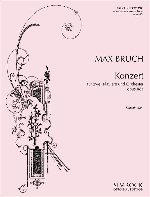 Max Bruch schrieb sein Konzert für zwei Klaviere 1912 für ein amerikanisches Klavierduo, das es jedoch nur in einer umfassenden Bearbeitung aufführte. Erst 1976 kam es zur Veröffentlichung der Originalversion. Der Klavierauszug von Wilhelm Brückner-Rüggeberg liegt nun in einem Neusatz sowie erstmals mit zusätzlichen getrennten Solostimmen für beide Klavierparts vor. Bruchs pianistisch kraftvoller Spätling reflektiert Echos von Bach und Brahms.