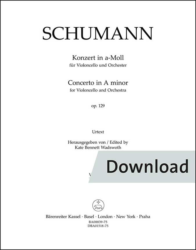 Diese praktische Ausgabe enthält eine Einleitung (engl./dt.), in der die Entstehung und Geschichte des Werks erläutert wird, sowie einen ausführlichen Kritischen Kommentar (engl.), der auf Lesarten eingeht und Vergleiche vornimmt zwischen dem vom Komponisten autorisierten Aufführungsmaterial von 1854 und den Neuausgaben von Klavierauszug und Cellostimme, die nach Schumanns Tod, aber vor Claras Ausgabe von 1883 erschienen. Darüber hinaus bietet diese Edition Kommentare zur Aufführungspraxis, verfasst von der Herausgeberin Kate Bennett Wadsworth, selbst Cellistin und Spezialistin auf dem Gebiet des Violoncellospiels des 19. Jahrhunderts. Instruktive Videos und weiteres Material sind über die Bärenreiter-Website einzusehen.
