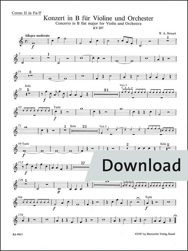 für Violine und Orchester Nr. 1 B-Dur KV 207