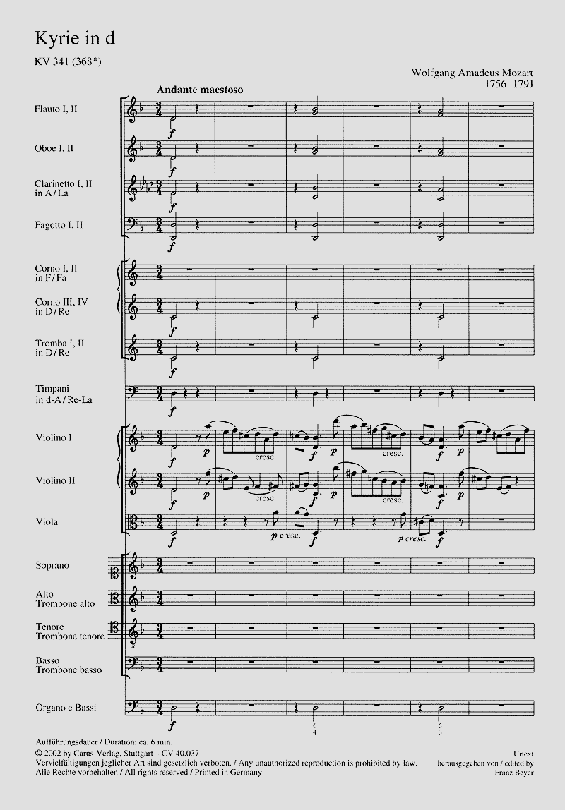 Münchner Kyrie - Coro SATB, 2 Fl, 2 Ob, 2 Clt, 2 Fg, 4 Cor, 2 Tr, 3 Trb, Timp, 2 Vl, Va, Vc/Cb, Org