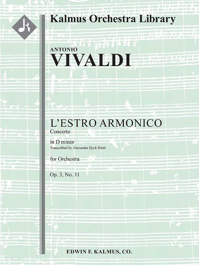 L'Estro armonico (Die harmonische Inspiration) ist eine Sammlung von 12 Konzerten von Antonio Vivaldi (1678-1741) für Streichinstrumente, die erstmals 1711 veröffentlicht wurde. Nr. 11 in d-Moll (RV 565/F.IV.11) ist dreisätzig und wurde ursprünglich für 2 Soloviolinen, Solocello, Streicher und Continuo geschrieben. Die vorliegende Ausgabe von Alexander Iljitsch Siloti aus dem Jahr 1913 orchestriert das Originalwerk von Vivaldi, indem er die Solostimmen weglässt und den Tuttistreichern einen kompletten Holzbläsersatz und eine Orgel hinzufügt. Instrumentierung: 2.2.2.2+CBsn: 0.0.0.0: Org: Str (9-8-7-6-5 im Satz).