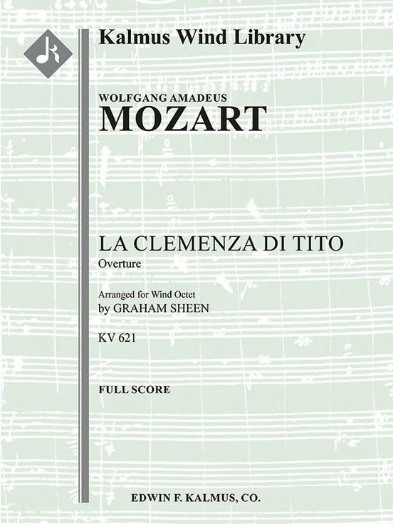 La Clemenza di Tito (The Clemency of Titus), K. 621 was written by Wolfgang Amadeus Mozart (1756-1791) in 1791 after he had almost finished Die Zauberflöte (The Magic Flute). Commissioned to celebrate the coronation of Leopold II, Holy Roman Emperor, as King of Bohemia, it was written very quickly and was considered to be a weaker work by the young composer. In the 20th century, a reevaluation of the opera has resulted in its inclusion among the fifty most often staged works in the repertoire. Telling the story of the Roman Emperor Titus, and the mercy he showed to his would-be assassins, the original three-act libretto by Pietro Metastasio was adapted by numerous other composers, although Mozart's two-act version was revised by Caterino Mazzolà. The orchestral overture is frequently performed in concert settings, and this arrangement for wind octet by Graham Sheen offers the work to the chamber stage. Instrumentation: 0.2.2.2: 2.0.0.0.
