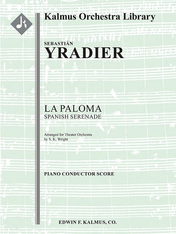 Das Lied La Paloma (Die Taube) wurde von dem spanischen baskischen Komponisten Sebastián Yradier (1809-1865) um 1860 geschrieben, nachdem er Kuba besucht hatte. Nach seiner Veröffentlichung im Jahr 1879 wurde es schnell populär, nicht nur in Spanien, sondern auch in Mexiko und später in der ganzen Welt. Es ist nach wie vor eines der populärsten Lieder der Geschichte, von dem es mehr als tausend Versionen und zahlreiche Aufnahmen gibt. Die vorliegende Fassung für Theaterorchester wurde von S. K. Wright arrangiert. Besetzungen: 1.1.2.1: 2.2.1.0: Perc(2): Str (9-8-7-6-5 im Satz). Klavierdirigentenpartitur im Set enthalten.