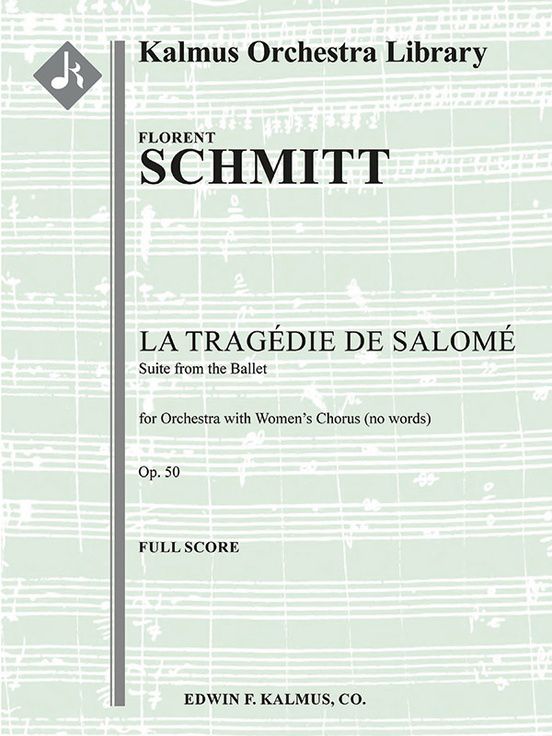 French composer Florent Schmitt (1870-1958) originally composed the ballet La tragédie de Salomé in 1907 for a commission from Jacques Rouché for American dancer Loie Fuller and the Théâtre des Arts, based on a poem by Robert d'Humières. The original hour long ballet required only twenty instruments, restricted by the physical limitations of the theater. In 1910, Schmitt prepared this much better-known suite, cutting the length in half and greatly expanding the orchestration. The work is widely regarded as one of the best examples of French tone painting and is Florent Schmitt's most popular composition. Instrumentation: 2+Picc.2+EH.2+BCl.3(3rd opt.)+Sarrus: 4.3.3.1: Timp.Perc(5): 2Hp: Str (9-8-7-6-5 in set): Soprano Voice or Ob Solo: Women's Chours.