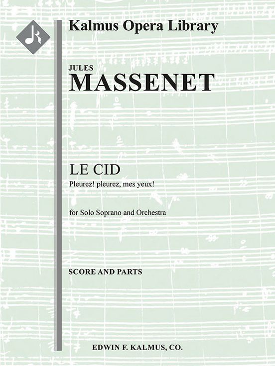Le Cid by Jules Massenet (1842-1912) is an opera in four acts with ten tableaux. It tells the the story of the historical Spanish knight Rodrigue, who led Spain's army to victory of the Moors, earning him the name Le Cid. The tale of his rise is framed by his love for Chimène, whose father Rodrigue is forced to kill in a duel when Rodrigue's father demands revenge for an insult Chimène's father gave. While Chimène demands justice and the execution of Rodrigue for the murder of her father, Rodrigue begs for a stay to lead the fight against the moors, where is victorious. Rodrigue offers his life as punishment for the murder, but Chimène pardons him with a declaration of love. Le Cid premiered at the Paris Opéra on November 30, 1885, Ernest Altès conducting, and it was performed 150 times in Paris by 1919, when it faded from the repertory. Numerous performances around the world have taken place throughout the 20th and 21st centuries, and Paris finally held a revival of the work in 2015 at the Palais Garnier. Chimène expresses her grief at her situation when she sings, Pleurez! pleurez mes yeux..., during Tableau 5, which takes place in her chamber at night. Instrumentation: 2.2.2.2: 4.2.3.1: Timp: Harp: Str (4-4-3-3-3 in set): Solo Soprano Voice.