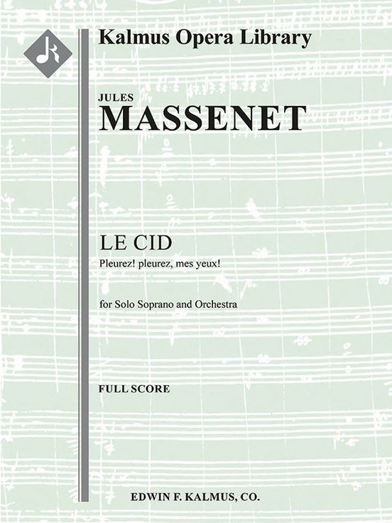 Le Cid by Jules Massenet (1842-1912) is an opera in four acts with ten tableaux. It tells the the story of the historical Spanish knight Rodrigue, who led Spain's army to victory of the Moors, earning him the name Le Cid. The tale of his rise is framed by his love for Chimène, whose father Rodrigue is forced to kill in a duel when Rodrigue's father demands revenge for an insult Chimène's father gave. While Chimène demands justice and the execution of Rodrigue for the murder of her father, Rodrigue begs for a stay to lead the fight against the moors, where is victorious. Rodrigue offers his life as punishment for the murder, but Chimène pardons him with a declaration of love. Le Cid premiered at the Paris Opéra on November 30, 1885, Ernest Altès conducting, and it was performed 150 times in Paris by 1919, when it faded from the repertory. Numerous performances around the world have taken place throughout the 20th and 21st centuries, and Paris finally held a revival of the work in 2015 at the Palais Garnier. Chimène expresses her grief at her situation when she sings, Pleurez! pleurez mes yeux..., during Tableau 5, which takes place in her chamber at night. Instrumentation: 2.2.2.2: 4.2.3.1: Timp: Harp: Str (4-4-3-3-3 in set): Solo Soprano Voice.