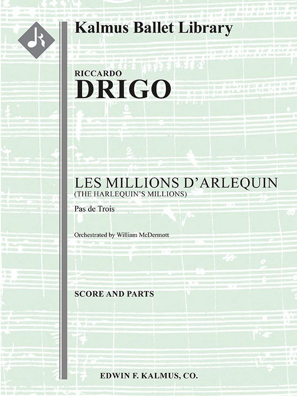 Das Ballett Les Millions d'Arlequin (Die Millionen des Harlekin; Harlekinade) war eines von drei Kurzballetten, die der berühmte Choreograf Marius Petipa von den kaiserlichen Theatern in Sankt Petersburg für eine private Aufführung am kaiserlichen russischen Hof in Auftrag gab. Das von Petipa verfasste Libretto ist ein Ballett in zwei Akten mit zwei Tableaus und basiert auf Episoden mit Figuren aus der italienischen Commedia dell'arte. Bei der Uraufführung durch das Kaiserliche Ballett in Sankt Petersburg am 23. Februar 1900 brach die königliche Familie mit der üblichen Etikette und brach am Ende in tosenden Applaus aus. Der Komponist Riccardo Drigo (1846-1930) erhielt jedoch den größten Beifall und wurde vom russischen Adel herzlich beglückwünscht. Die vorliegende Orchestrierung des Pas de Troi wurde von William McDermott vervollständigt. Instrumentierung: 2(1dPicc).2.2.2: 4.2.3.0: Timp.Perc(2): Hp: Str (4-4-3-3-3 im Satz).