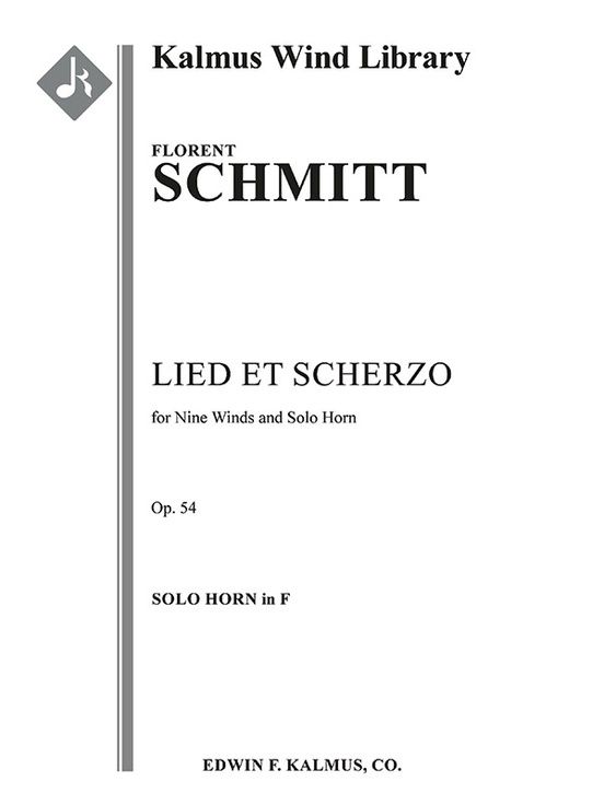 French composer Florent Schmitt (1870-1958) wrote the first version of Lied et Scherzo, Op. 54 for solo horn and wind nonet in 1910. It was composed to be the horn examination piece for the Conservatoire de Paris that year, and it was premiered by the context winner on July 11, 1910. It is a unique work, full of the mixture of late-German Romanticism and the harmonies of French impressionism that makes Schmitt difficult to classify. As was common for Schmitt's works, he created alternate versions featuring different instruments. Aside from the solo horn and wind nonet version, versions for horn and piano, cello and piano, and piano four-hands are also available. Instrumentation: 1+Picc.1+EH.2.2: 1.0.0.0: Solo Horn in set.