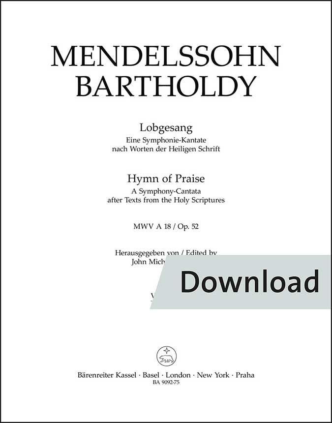 Mendelssohns 'Lobgesang' wurde von Zeitgenossen häufig in Zusammenhang mit Beethovens 9. Sinfonie gebracht - und nicht selten als Nachahmung angesehen. Dass dieser Vergleich keine Berechtigung hat, zeigt der renommierte Mendelssohn-Spezialist John Michel Cooper in einer umfangreichen Einführung zur vorliegenden Urtext- Ausgabe. Seine These: Mit dem Lobgesang erschuf Mendelssohn eine neue Gattung, die er schließlich als 'Symphonie-Kantate' bezeichnete. Als weltliches Komplementärstück fügte er später dieser Gattung 'Die Erste Walpurgisnacht' hinzu.