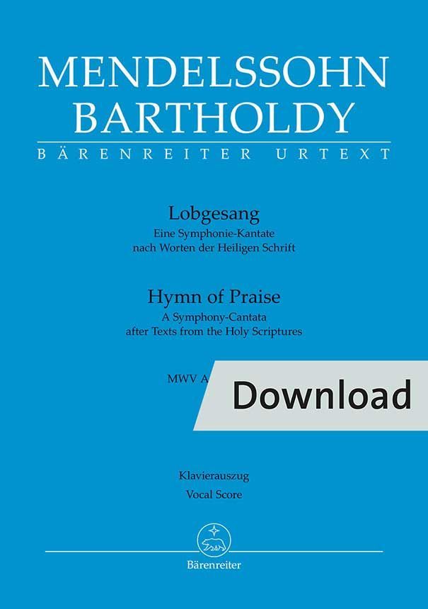 Mendelssohns 'Lobgesang' wurde von Zeitgenossen häufig in Zusammenhang mit Beethovens 9. Sinfonie gebracht - und nicht selten als Nachahmung angesehen. Dass dieser Vergleich keine Berechtigung hat, zeigt der renommierte Mendelssohn-Spezialist John Michel Cooper in einer umfangreichen Einführung zur vorliegenden Urtext- Ausgabe. Seine These: Mit dem Lobgesang erschuf Mendelssohn eine neue Gattung, die er schließlich als 'Symphonie-Kantate' bezeichnete. Als weltliches Komplementärstück fügte er später dieser Gattung 'Die Erste Walpurgisnacht' hinzu.