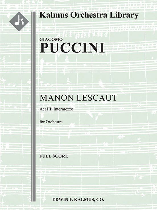 Manon Lescaut, the third opera and first notable success of Giacomo Puccini (1858-1924), took shape between 1889 and 1892. Five different writers worked on its libretto. The Teatro Regio in Turin saw its first performance on February 1, 1893. The Intermezzo in Act 3, according to opera scholar Julian Budden, bears the unmistakable influence of Wagner's Tristan und Isolde. Creating a dark and brooding atmosphere, it prepares the drama for the grim events of Manon's imprisonment and her deportation to Louisiana, where she will be eternally separated from Des Grieux. Instrumentation: 3(3rd dPicc).2+EH.2+BCl.2: 4.3.3.1: Timp.Perc(1): Hp: Str (9-8-7-6-5 in set). Reprint edition.