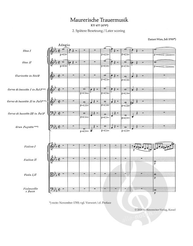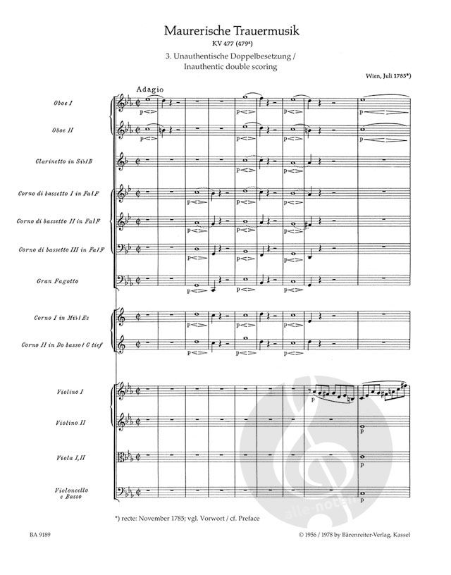 Diese Ausgabe enthält alle drei Fassungen: die originale und die spätere Fassung von Mozart (hrsg. von Ulrich Konrad) sowie die postume Doppelbesetzung (hrsg. von H. C. Robbins Landon, aus der „Neuen Mozart-Ausgabe“). Mit den Orchesterstimmen sind alle drei Fassungen spielbar.