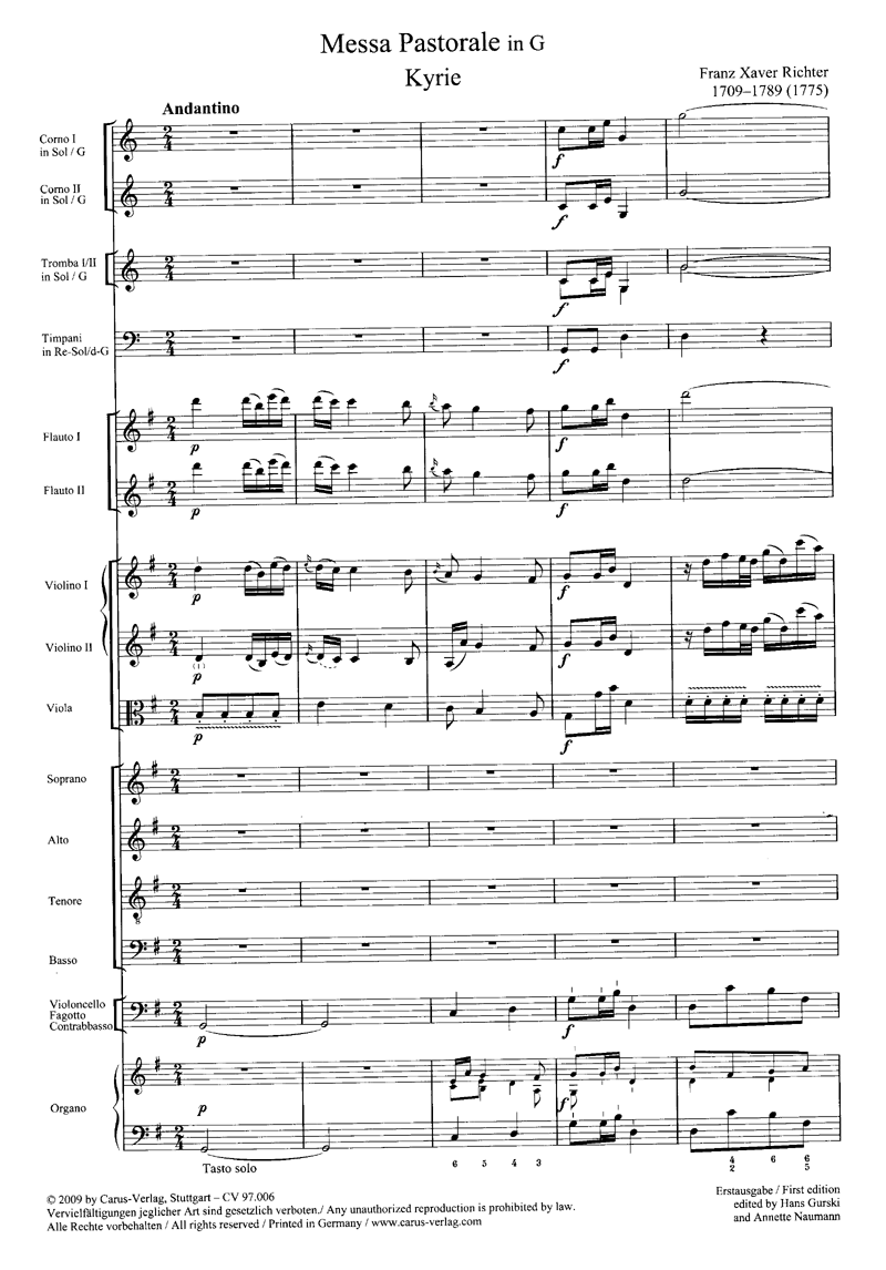 - Besetzung Soli, Gemischter Chor (SATB), Orchester und Basso Continuo