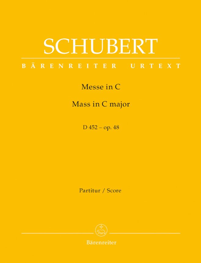 Streicher ohne Va. Urtext der Neuen Schubert-Ausgabe. Sopran solo, Alt solo, Tenor solo, Bass solo, Gemischter Chor-SATB, Oboe (2)/ Klarinette in c ad lib., Trompete in c (2) ad lib., Pauke ad lib., Streicher, Orgel - Partitur; Urtextausgabe