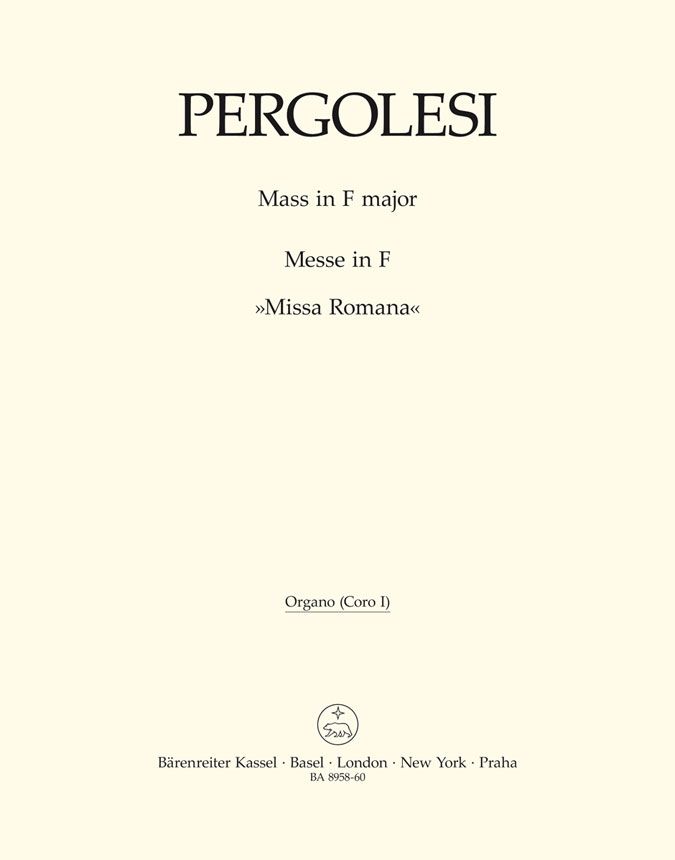 Die Missa in F von 1734 für zwei bzw. vier Chöre ist wohl das bedeutendste Werk Pergolesis für Chor und Orchester. Die Bezeichnung 'Missa Romana' ist nachträglich entstanden. Sie geht auf eine Aufführung in Rom zu Pergolesis Lebzeiten zurück.