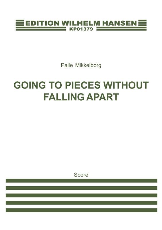 Palle Mikkelborg GOING TO PIECES WITHOUT FALLING APART 2002 for violin, harpe og strygereTilegnet Elise Båtnes og Helen DaviesForord l Programnote En solful d morgentur i Melbourne bragte mig forbi en boghandel der specialiserede sig i 'spiritualbooks', og i vinduet faldt mine øjne på et citat som øjeblikkeligt ramte mig følelsesmæssigtstærkt- og jeg følte at jeg havde fundet titlen på den komposition jeg på tankeplan allerede vari gang med. Citatet lød:'going to pieces... without falling apart'Tre temaer og relaterede skalaer, baseret på henholdsvis Elise Båtnes', Helen Davies' og BergenKammerensembles navne, har været afgørende for dele af tonesproget, og forekommer bådeielose-up og mere douche i kompositionens syv hovedafsnit. Det barnlige, det enkle, det her-og-nu naive, det umiddelbare, kom til at spille en vigtig rolleunder arbejdet. Ikke fordi selve mit tonesprog er særligt meget anderledes end ellers (hvordanskulle det også kunne blive det?), men formuleringen: at go to pieces fik mig til at tænke på 'atblive som barn på ny', atter at være u-bange, at turde tro på det enkle. Udover denne- i bedste betydning- enkle inspiration er ønsket at kompositionens kurve kanopleves som en mulig 'meditiations-rejse': i starten en tro på egen ro, langsomt breder uroensig, og i lystfulde glimt ser man sig selv 'danse' en rituel dans, med åndehuller her og der: ogfristelsen til at rive forhænget væk og go to pieces, og angsten for måske at miste sig selv undervejs, breder sig. Dog, til sidst erkender man at det var rejsen værd, og at man heller ikke denne gangfaldt apart, men kan se frem mod atter at vise livet sin respekt ved spirituelt fuldstændigt at givesig hen, dog vel vidende at livet merciless & merciful, med kærlig hånd villade dig'go to pieces... without falling apart'Men selvklart er mit egentlige ønske: at man blot lader musikken leve sit eget ordløse liv - atlytteren har sin egen rejse. Palle Mikkelborg