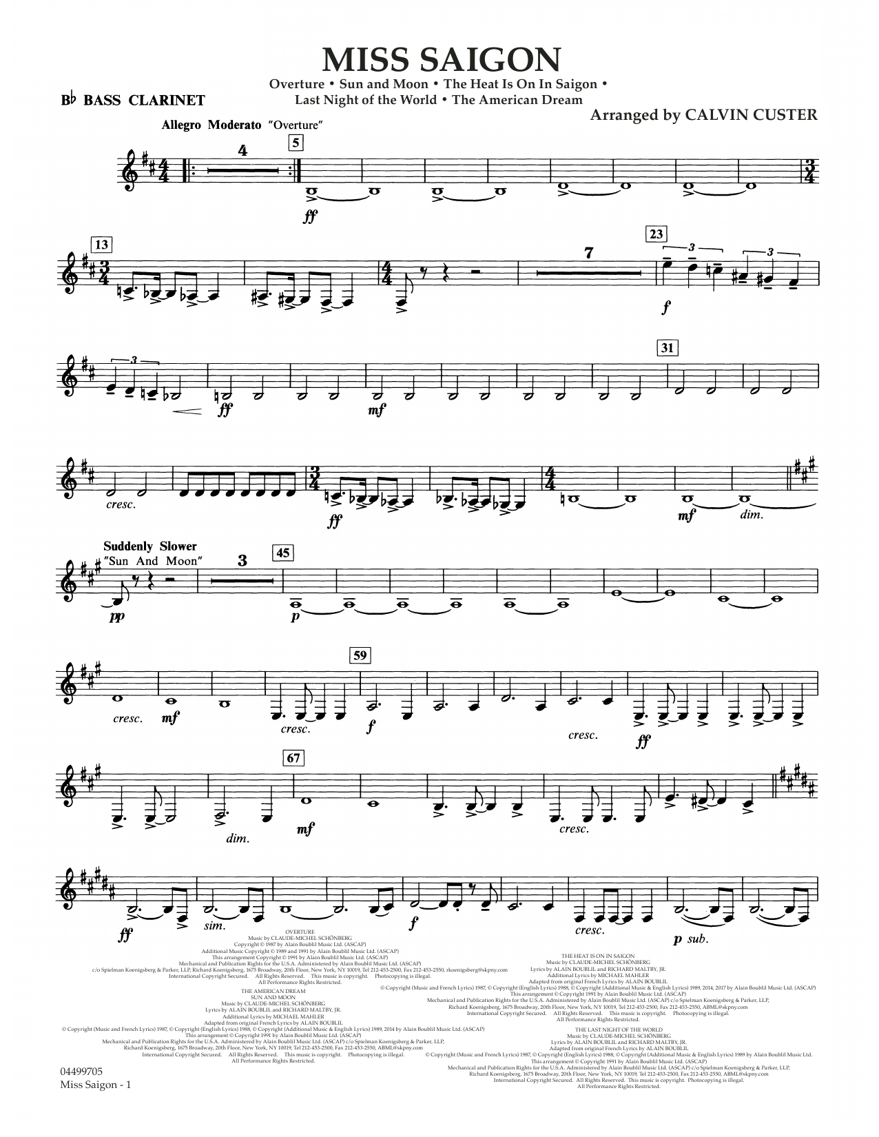 Das Medley aus den bekanntesten Melodien des Musicals wurde erstellt von Calvin Custer und beinhaltet: Overture • The Heat Is On in Saigon • Sun And Moon • The Last Night Of The World • The American Dream – (Grade 3,5)