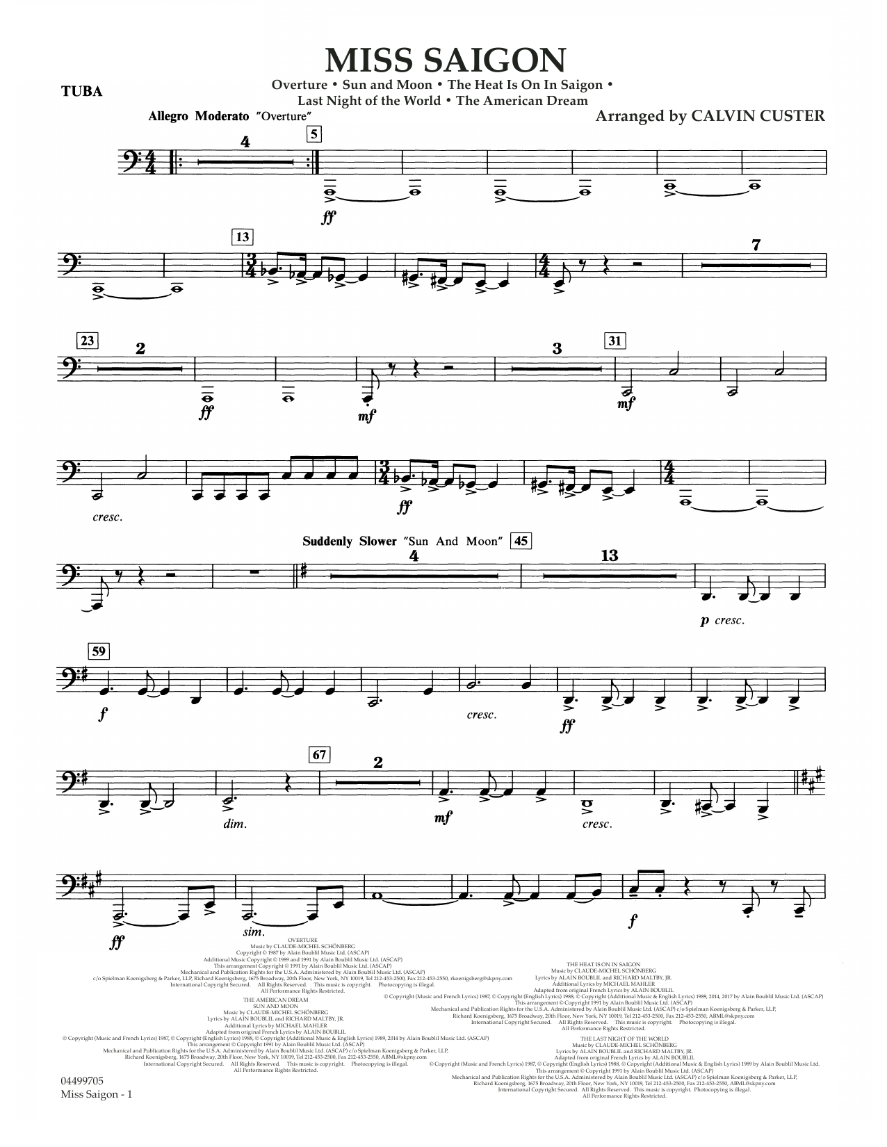 Das Medley aus den bekanntesten Melodien des Musicals wurde erstellt von Calvin Custer und beinhaltet: Overture • The Heat Is On in Saigon • Sun And Moon • The Last Night Of The World • The American Dream – (Grade 3,5)