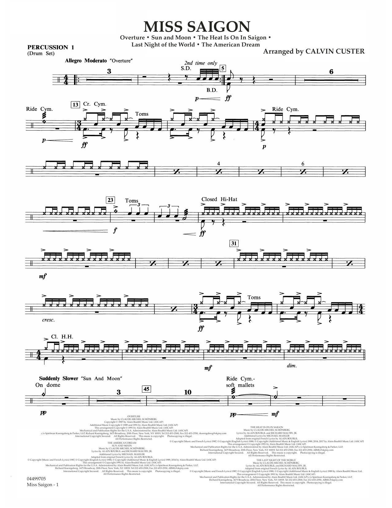 Das Medley aus den bekanntesten Melodien des Musicals wurde erstellt von Calvin Custer und beinhaltet: Overture • The Heat Is On in Saigon • Sun And Moon • The Last Night Of The World • The American Dream – (Grade 3,5)