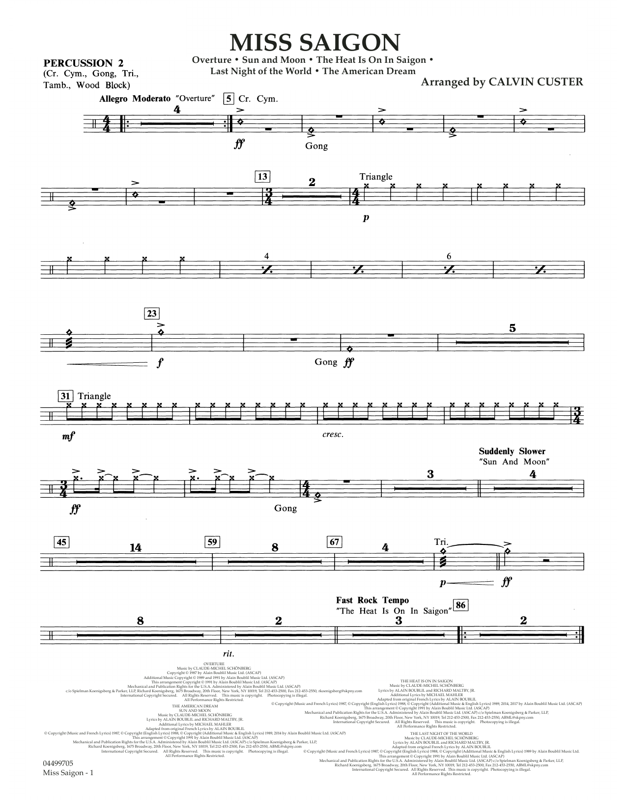 Das Medley aus den bekanntesten Melodien des Musicals wurde erstellt von Calvin Custer und beinhaltet: Overture • The Heat Is On in Saigon • Sun And Moon • The Last Night Of The World • The American Dream – (Grade 3,5)