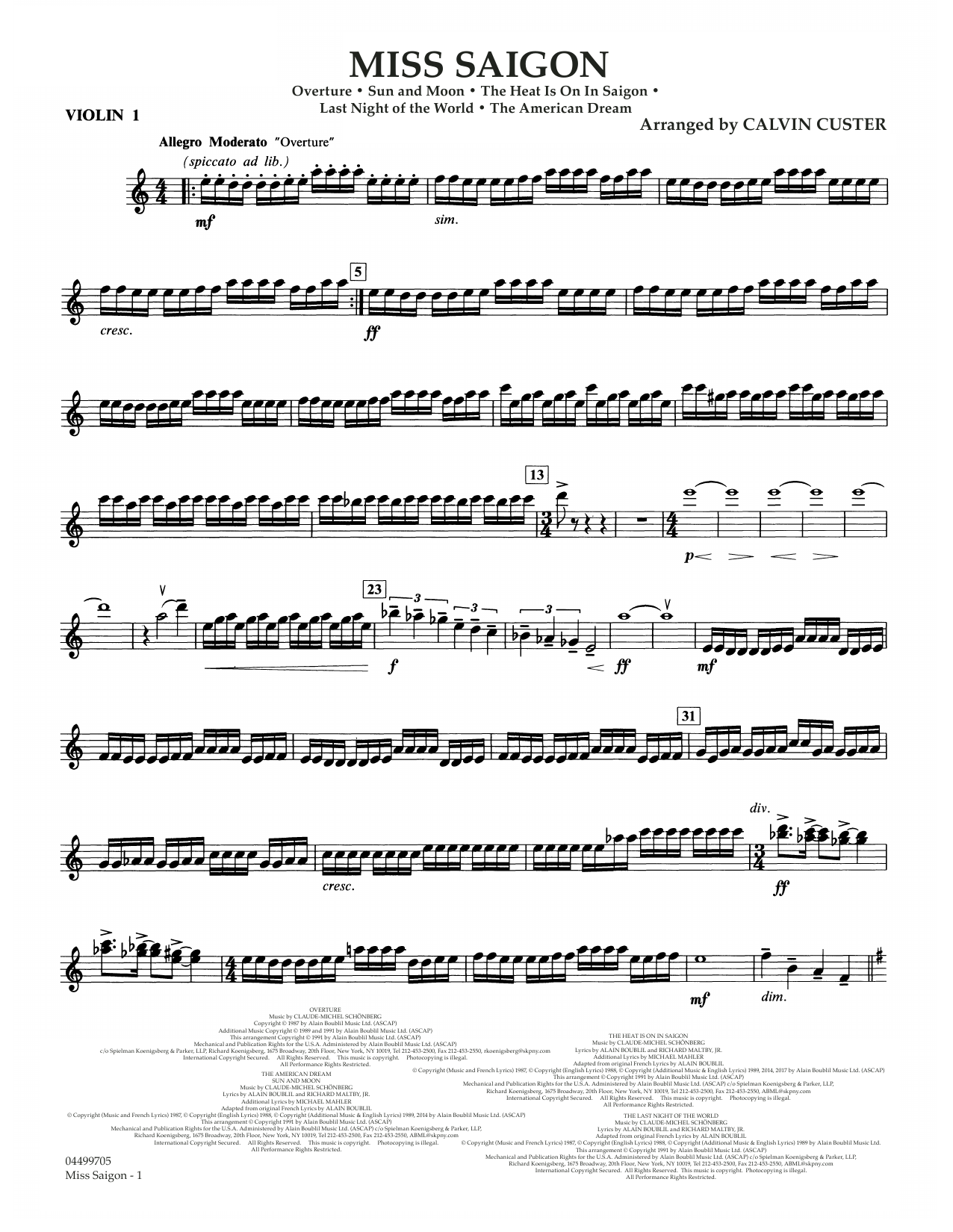 Das Medley aus den bekanntesten Melodien des Musicals wurde erstellt von Calvin Custer und beinhaltet: Overture • The Heat Is On in Saigon • Sun And Moon • The Last Night Of The World • The American Dream – (Grade 3,5)