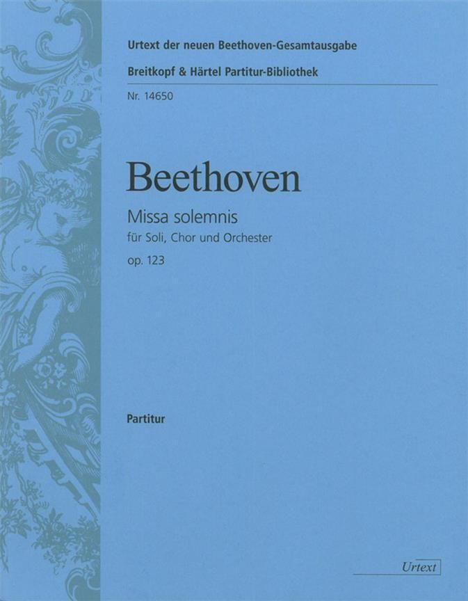 Ludwig van Beethoven komponierte seine Missa solemnis zwischen 1819 und 1822. Die vorliegende Ausgabe legt als Hauptquelle die Arbeitskopie der Partitur zugrunde, die Beethoven wohl unmittelbar nach Fertigstellung der Komposition in Auftrag gab. Sie ist die älteste Abschrift des Werks und die einzige Kopie, die das heute unvollständige Autograph zur Vorlage hatte. Da die Arbeitskopie im Zuge des weiteren Kopierens immer wieder selbst revidiert und korrigiert wurde, kommt sie heute einer Fassung letzter Hand am nächsten.