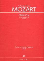 Dominicusmesse - Mozarts 'Dominikusmesse' wurde zur Primiz Cajetan Hagenauers, des späteren Paters Dominicus, 1769 in Salzburg geschrieben. Dem Typus nach handelt es sich um eine 'feierliche Messe' mit großer, auch Blechbläser heranziehende Besetzung, wie man sie zu kirchlichen Hochfesten und anderen besonders repräsentativen geistlichen Anlässen zelebrierte. Mozart betont diesen solemnen Charakter noch durch eine langsame Einleitung zu Anfang des Kyrie und zwei ausführliche Fugen am Ende von Gloria und Credo. Obwohl Mozart das Werk bereits mit 13 Jahren schrieb, übertrifft es schon einen Großteil der durchschnittlichen kirchlichen Gebrauchsmusik seiner Zeit. Soli SATB, Coro SATB, 2 Fl, 2 Ob, 2 Cor, 2 Ctr, 2 Tr, Timp, 2 Vl, 2 Va, Bc, [3 Trb]