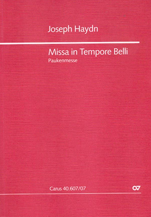 Pauken-Messe - 'Die ,Missa in Tempore Belli' ist ein in mehrfacher Hinsicht interessantes Werk. Zum einen lässt diese Messvertonung einige Rückschlüsse auf die Situation der österreichischen Kirchenmusik unter dem Einfluss der damaligen Gesetzgebung zu. Ausserdem hat die politische Lage mit der bevorstehenden Invasion Österreichs durch die Truppen unter Napoleon jenen Niederschlag gefunden, der sich schon in der Bezeichnung der Komposition als ,Messe in Kriegszeit' offenbart (im deutschen Sprachraum ist das Werk vor allem unter dem Namen ,Paukenmesse' bekannt). Nicht zuletzt aber steht die Komposition am Beginn jener Gruppe von sechs lateinischen Messvertonungen [vgl. auch CV 40.611 ,Schöpfungsmesse'], die zusammen mit den Oratorien ,Die Schöpfung' und ,Die Jahreszeiten' das vokale Spätwerk Haydns bilden und die unbestritten zu seinen kompositorischen Spitzenleistungen zählen' (Wolfgang Hochstein im Vorwort seiner kritischen Neuausgabe). Soli SATB, Coro SATB, Fl, 2 Ob, 2 Clt, 2 Fg, 2 Cor, 2 Tr, Timp, 2 Vl, Va, Vc/Cb, Org
