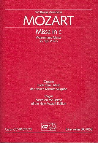 Waisenhausmesse - Bei Mozarts Missa in c-Moll KV 139 (114a) von 1768/69, der sog. Waisenhausmesse, handelt es sich sehr wahrscheinlich um den ersten Beitrag des Komponisten im Genre der Missa solemnis (mit Blechbläser), wie sie für kirchliche Hochfeste und andere besonders repräsentative geistliche Anlässe gepflegt wurde. Wie die Nähe von Kyrie und Agnus etwa zu Glucks 1762 in Wien uraufgeführter Oper 'Orfeo' (Furienszene, Eingangschor) zeigt, greift der junge Mozart in diesen Teilen der Messe unmittelbar auf bühnendramatische Ausdrucksmittel zurück. So besticht die Messe gerade durch ihre Kühnheit und lebhaften Kontraste, die Mozart in seinen späteren Messen eher vermeidet. Soli SATB, Coro SATB, 2 Ob, 2 Ctr, 2 Tr, 3 Trb, Timp, 2 Vl, 2 Va, Bc