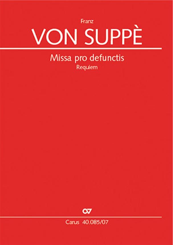 Requiem - Franz von Suppè schrieb sein 'Requiem' nicht als allgemein menschliche oder pantheistische Totenklage, sondern als bewusst christlich-katholisches Bekenntniswerk. Dass es Suppè gelungen ist, ein Requiem zu komponieren, das den theologisch-liturgischen Rahmen einhält, ohne deshalb den Anspruch des autonom gestalteten Kunstwerkes aufzugeben, macht vielleicht den - bisher unbekannten - Rang des Werkes aus. Soli SATB, Coro SATB, 2 Fl, 2 Ob, 2 Clt, 2 Fg, 4 Cor, 2 Tr, 3 Trb, Timp, Tamtam, 2 Vl, Va, Vc, Cb