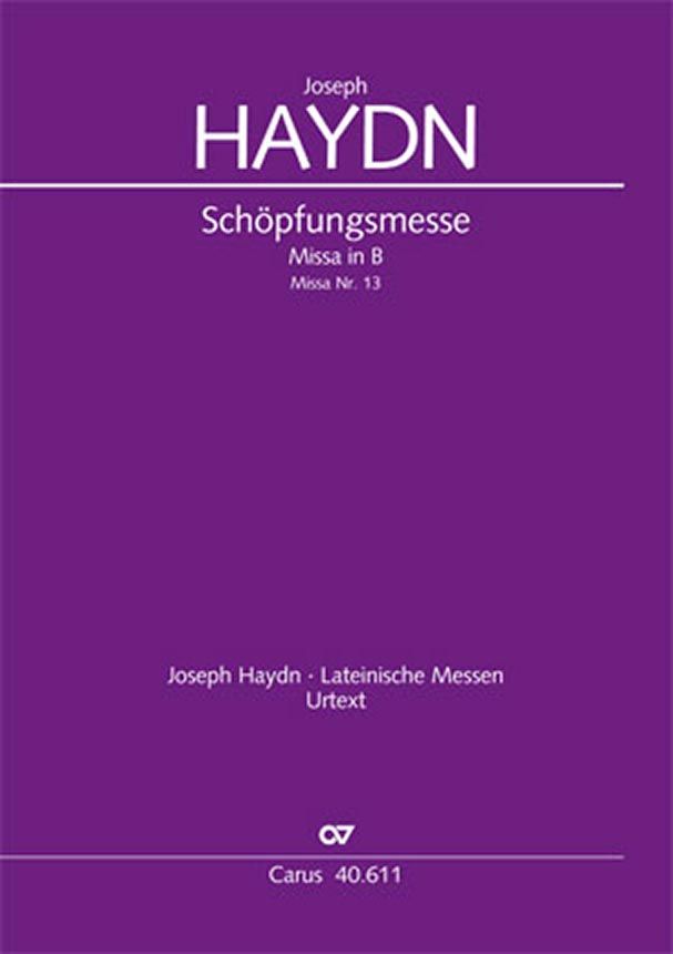 Schöpfungsmesse - Innerhalb von ca. sechs Wochen hat Haydn die Schöpungsmesse im Jahre 1801 als fünfte der insgesamt sechs späten Missae solemnes im Auftrag seines Dienstherrn Fürst Nikolaus II. Esterházy komponiert. Der Beiname 'Schöpfungsmesse' ist zwar nicht authentisch, gründet sich wohl aber auf das Zitat im 'Gloria' aus dem Oratorium 'Die Schöpfung'. Soli SATB, Coro SATB, 2 Ob, 2 Clt, 2 Fg, 2 Cor, 2 Tr, Timp, 2 Vl, Va, Vc/Cb, Org