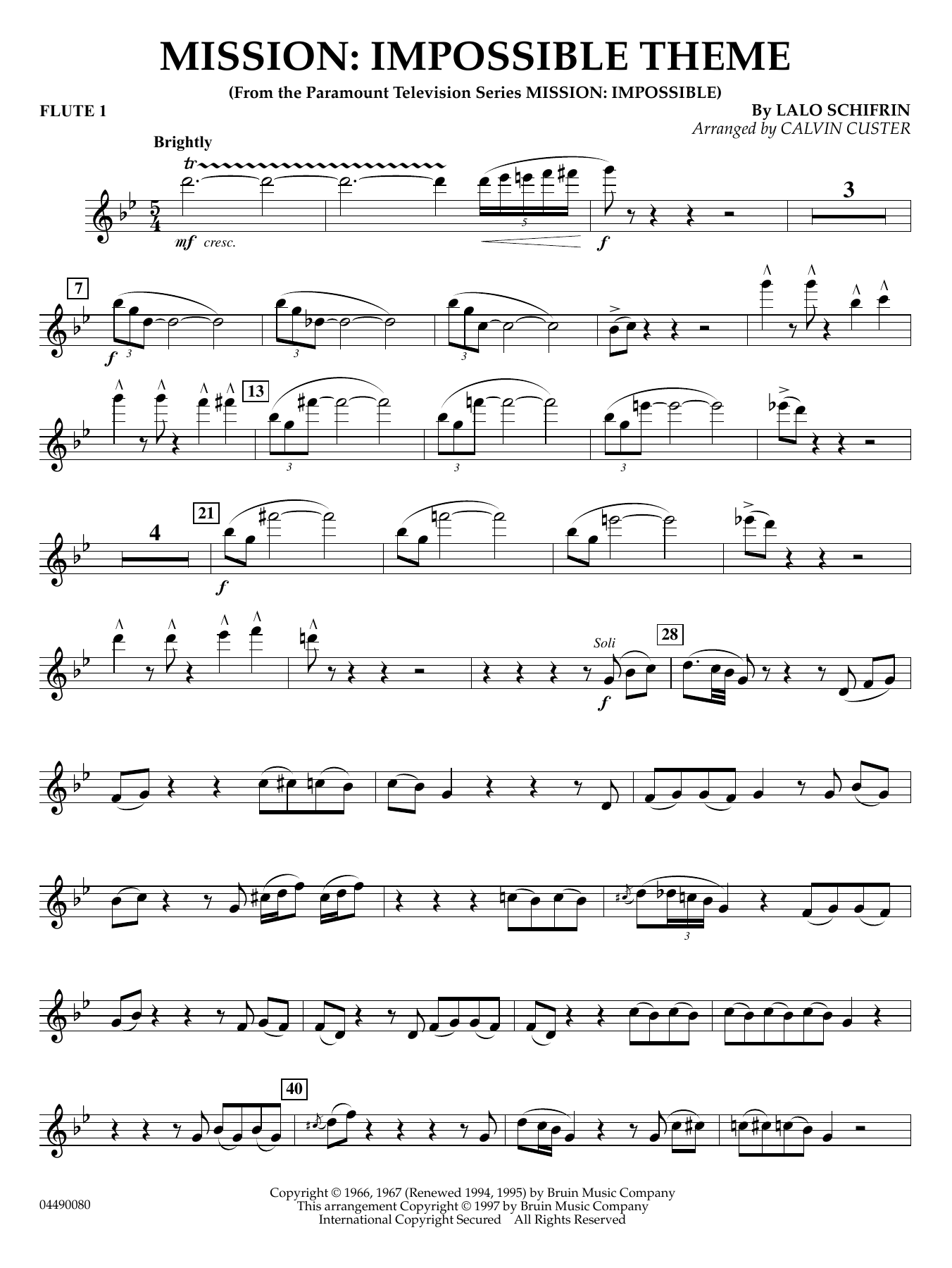 Noten der Titelmusik aus dem Film 'Mission: Impossible' für Sinfonieorchester, komponiert von Lalo Schifrin, arrangiert von Calvin Custer.