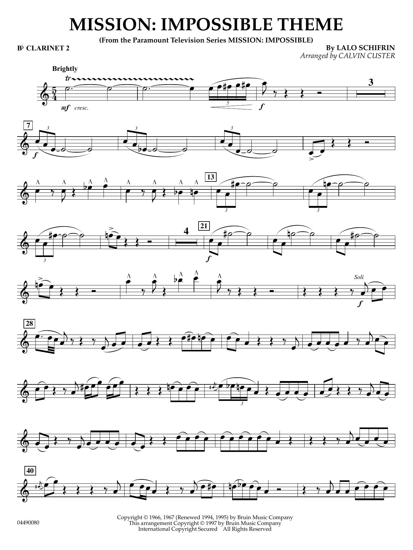 Noten der Titelmusik aus dem Film 'Mission: Impossible' für Sinfonieorchester, komponiert von Lalo Schifrin, arrangiert von Calvin Custer.