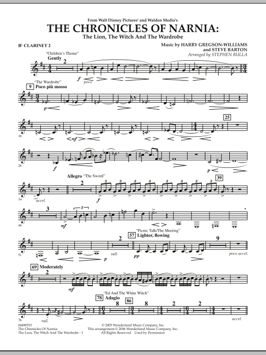 The Lion, the Witch and the Wardrobe - Bb Clarinet 2