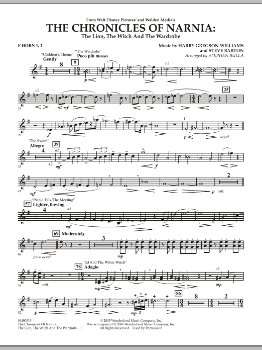 The Lion, the Witch and the Wardrobe - F Horn 1 & 2