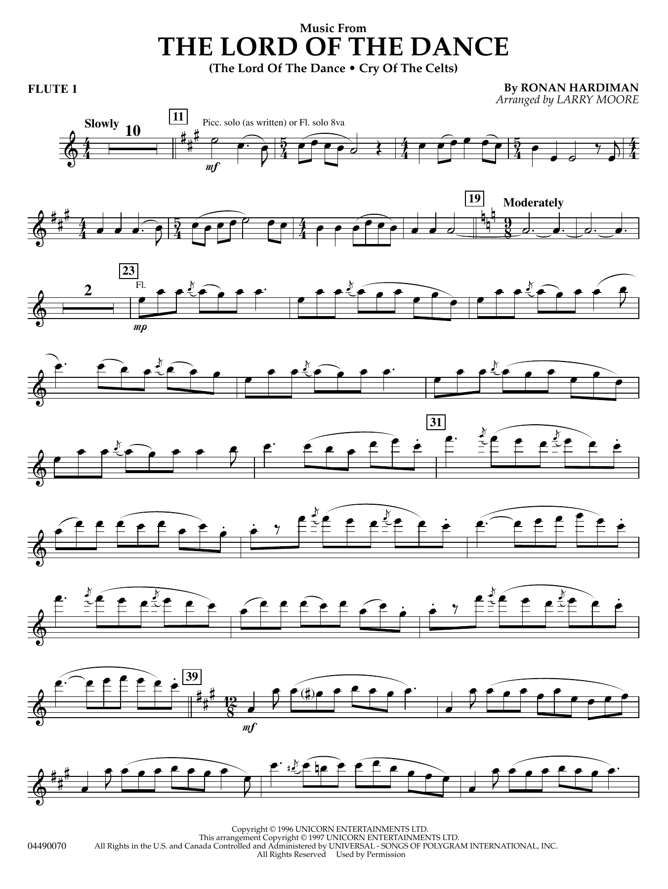 Michael Flatley's dazzling dance and music extravanganza is certainly an entertainment icon of stage shows, mixing Irish/Celtic dance, music, and spectacular theatrics. Larry Moore's popular arrangement features several of the great moments from the top-selling CD and video.