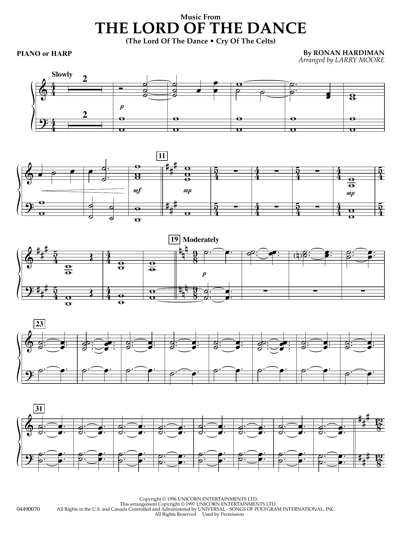 Michael Flatley's dazzling dance and music extravanganza is certainly an entertainment icon of stage shows, mixing Irish/Celtic dance, music, and spectacular theatrics. Larry Moore's popular arrangement features several of the great moments from the top-selling CD and video.
