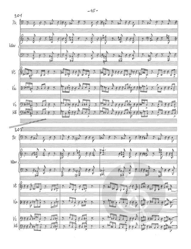KlavSolo, Flöte/ Piccolo, Oboe, Klarinette in b, Fagott/ Kfag, Horn, Trompete, Posaune, Tub, Pauke, Schlagzeug, Streicher (Violine (12), Viola (8), Violoncello (6), Kontrabass (3)) - Studienpartitur