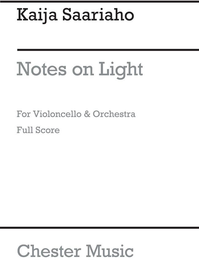 Kaija Saariaho's Notes on Light was commissioned by the Boston Symphony Orchestra, Musical Director James Levine, and given its first performance on 22nd February 2007 at Symphony Hall, Boston, USA, by the cellist Anssi Karttunen, with the Boston Symphony Orchestra, conducted by Jukka-Pekka Sarastre.