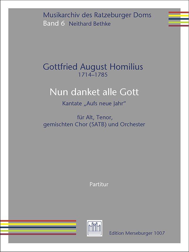 Kantate 'Aufs neue Jahr' für Soli (AT), 4-stimmigen gemischten Chor, 2 Flöten, 2 Hörner, 2 Trompeten in C, Pauken, Streicher und Orgel