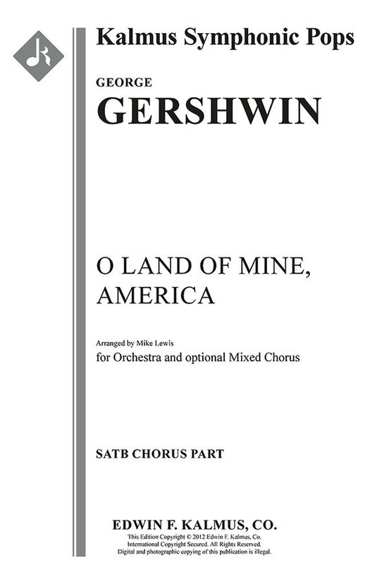 George Gerswhin (1898-1937) teamed up with Tin Pan Alley lyricist Michael E. Rourke (pen name Herbert Reynolds) in a 1919 competition to compose a national anthem for the United States of America, which did not have an official anthem at that time. The pair published the rousing march, titled O Land of Mine, America, anonymously with an eye to appeal directly to the most famous of the five judges, John Philip Sousa. They did not win the $5000 prize, instead earning an honorable mention and $50, which the two split between them. This version for orchestra and optional chorus has been arranged by Mike Lewis. Instrumentation: 3.2.2+BCl.2: 4.3.3.1: Timp.Perc(2): Str (9-8-7-6-5 in set): Mixed Chorus (opt.; available separately).