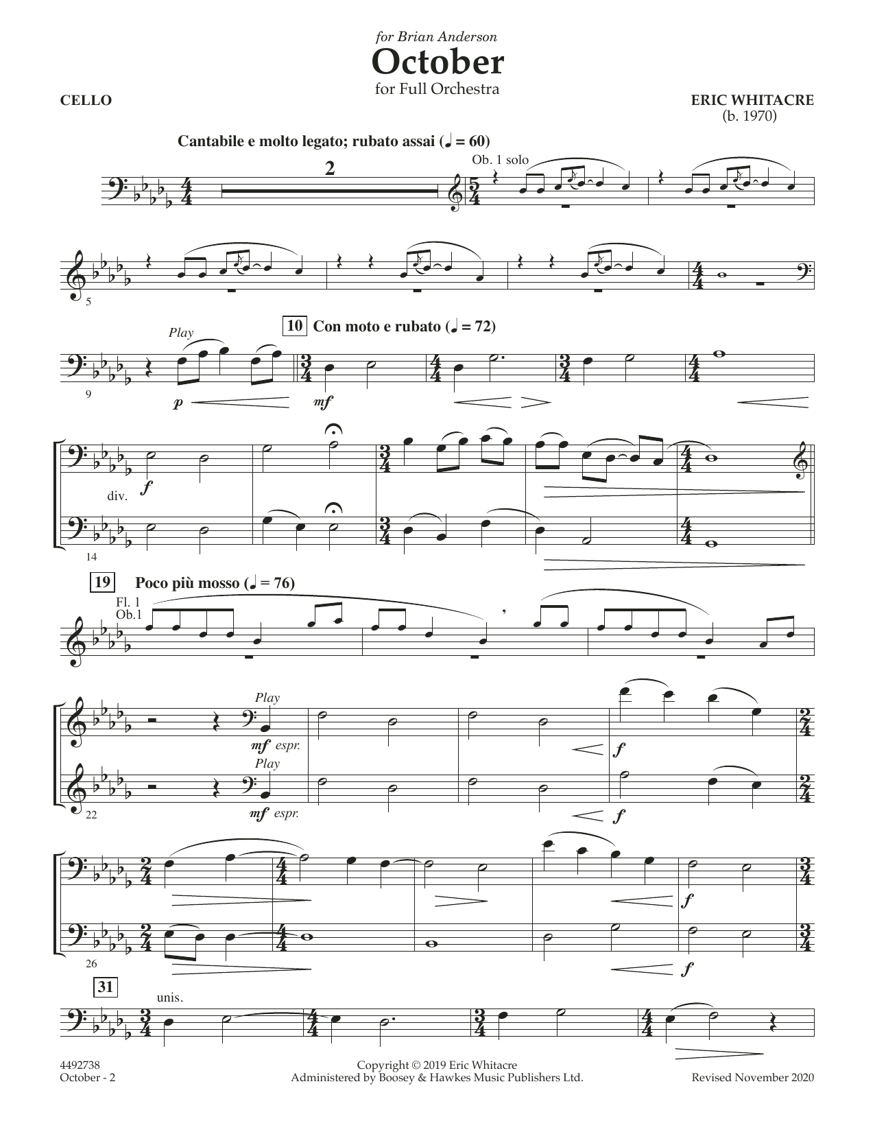 The continuing popularity of Eric Whitacre's dramatic and evocative music is evident in concert programming everywhere, with his symphonic, choral, and operatic works. October is arguably his most notable symphonic work, now adapted in this stunning version for full orchestra.