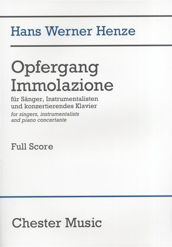 Full Score for Henze's 2010 setting of Franz Werfel's surrealist verse drama 'Sacrifice' for voices orchestra and concertante piano.