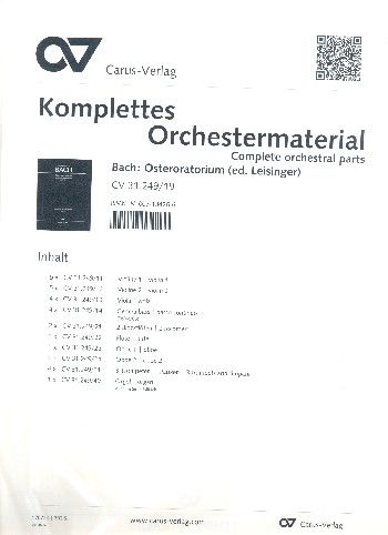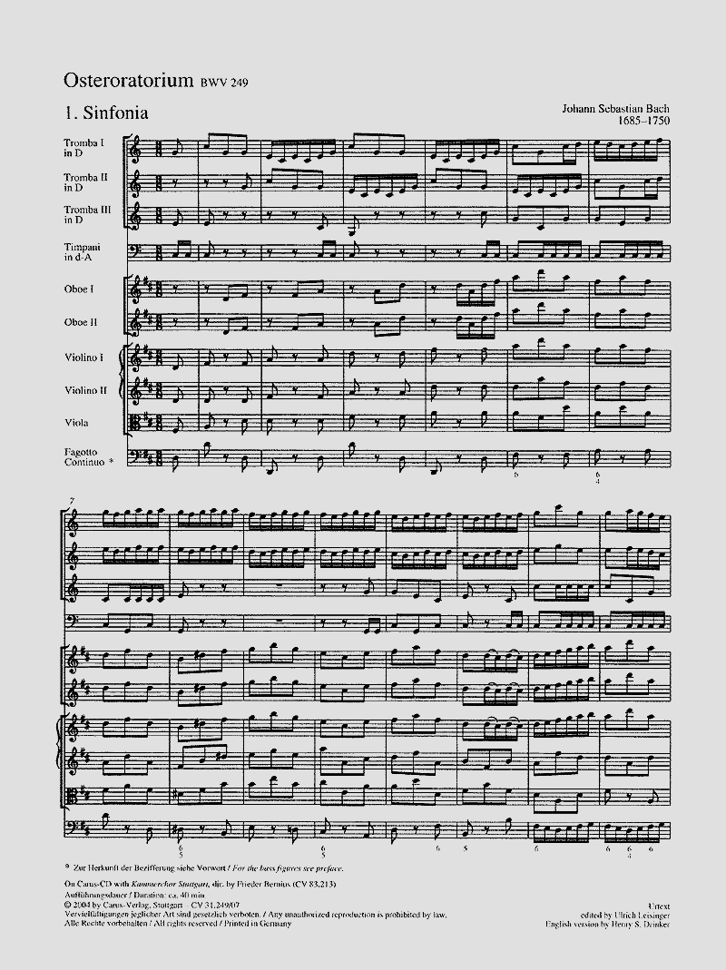Das Osteroratorium von Bach steht wie das Himmelfahrtsoratorium BWV 11 zu Unrecht im Schatten der beiden großen Passionen und des Weihnachtsoratoriums. Es wurde am 1. April 1725 zum ersten Mal aufgeführt. Danach hat Bach das Werk noch wenigstens dreimal den Leipziger Gottesdienstbesuchern an einem Ostersonntag zu Gehör gebracht und dabei stets erneut an der Komposition gefeilt. Die vorliegende Neuausgabe gibt erstmals den von Bach als Repertoirefassung angesehenen Notentext der reinschriftlichen Partitur aus den späten 1730er Jahren wieder.