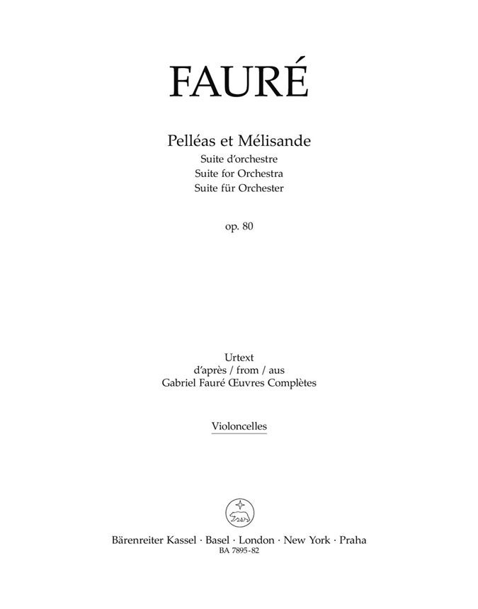 Die neue wissenschaftlich-kritische Edition der viersätzigen Orchestersuite 'Pelléas et Mélisande' op. 80 bei Bärenreiter basiert auf dem entsprechenden Band (Reihe IV, Bd. 2) der Gesamtausgabe 'Gabriel Fauré Œuvres complètes', der 2016 erschienen ist.